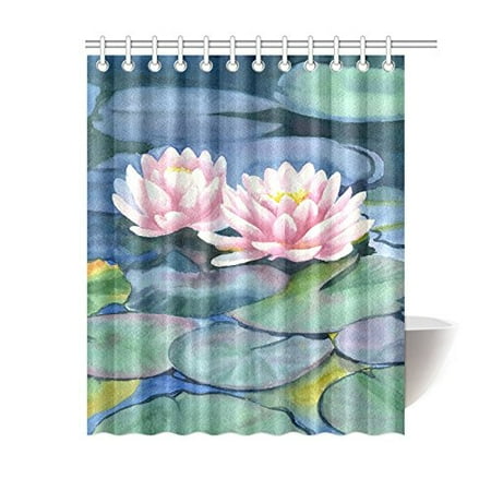 Mkhert Pink Water Lilies Flowers With Colorful Pads Decor Waterproof Polyester Fabric Shower Curtain Bathroom Sets 60x72 Inch