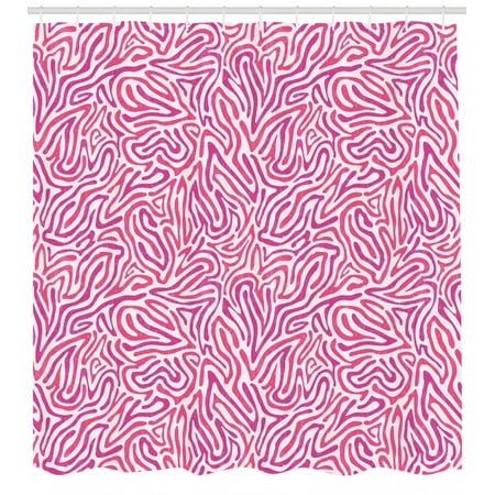 Pink Zebra Shower Curtain Curved Wild Wavy Line Stripe Formless Funky Groovy Boho Tribal Culture Fabric Bathroom Set With Hooks 69w X 75l Inches