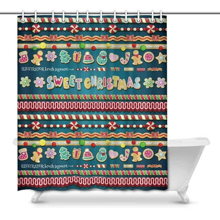 Mkhert Sweet Christmas Border Candy Cookies Brush Segments Waterproof Polyester Fabric Shower Curtain Bathroom Sets Hooks 66x72 Inch