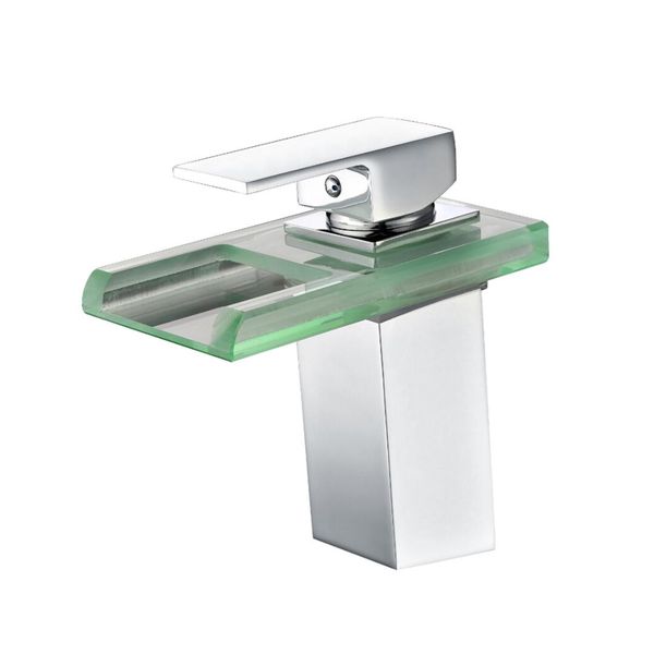 Fun Led Waterfall Glass Spout Single Handle Single Hole Bathroom Sink Faucet Chrome