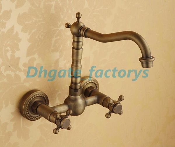 Details About Wall Mounted Antique Brass Vintage Bathroom Faucet Double Cross Handle Mixer Tap