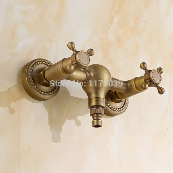2019 Antique Brass Washing Machine Bathroom Faucet Wall Mounted Dual Hole Dual Cross Handle Vintage Bathroom Faucet J16966 From Qinqinmeling 89 89