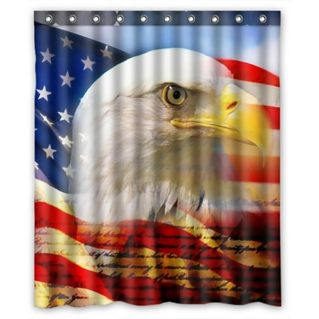 Zkgk Bald Eagle On American Flag Waterproof Shower Curtain Bathroom Decor Sets With Hooks 60x72 Inches