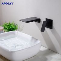 Wall Mounted Bathroom Faucet Matte Black Sink Copper Waterfall Tap Kitchen Basin Mixer Brass Concealed Valve Widespread Hot Cold